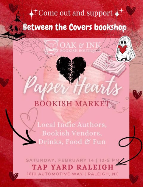 Come out and support Between the Covers bookshop and other local vendors. We will have blind dates with a Book Valentine's Day editions and other bookish goodies. Say hi and show us you follow our IG for 10% off.
